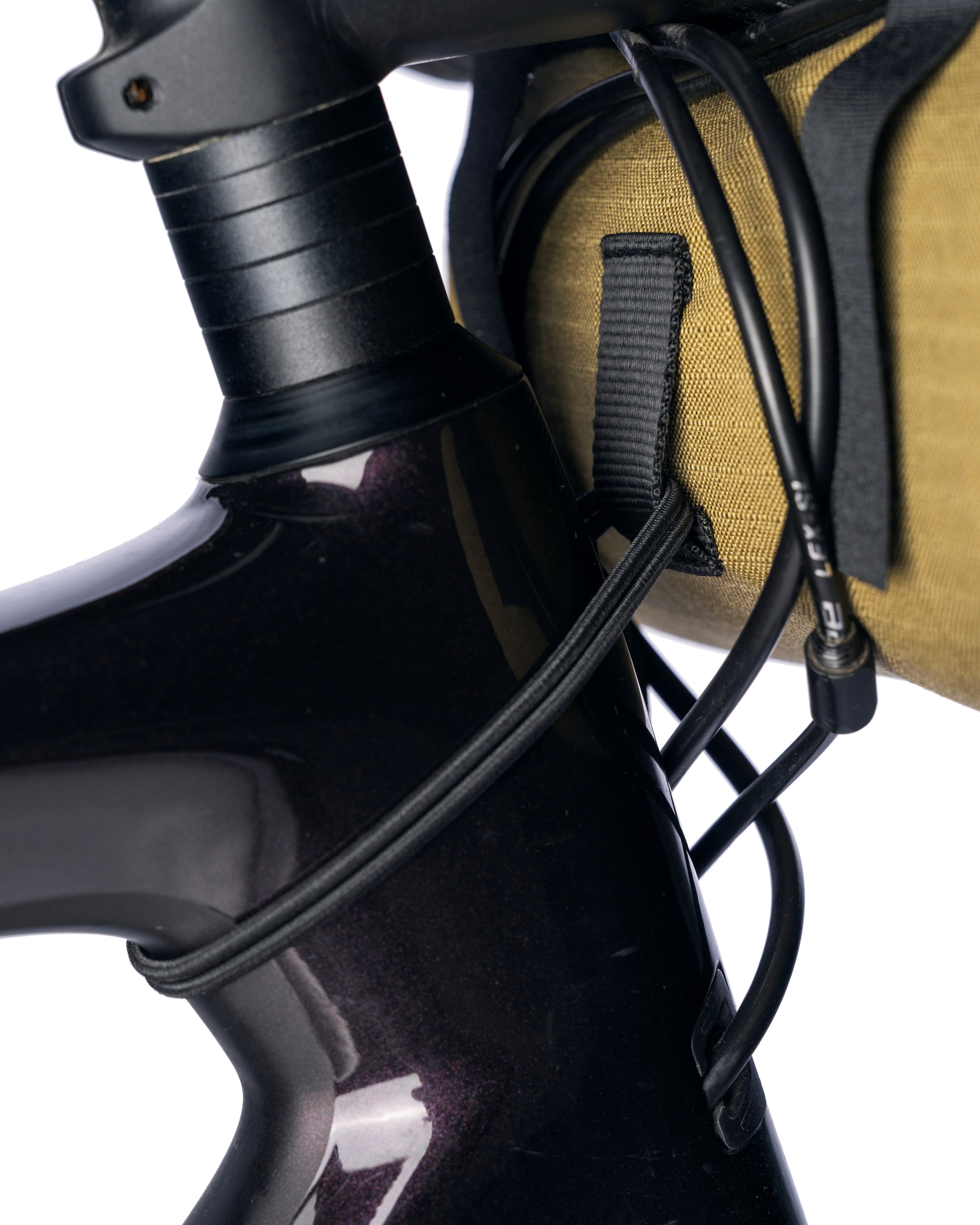 • Padded on all surfaces, keeps the bag content safe. It is firmly fixed on the handlebar with two sturdy straps and flexible shock cord attachment to the head tube. It does not sway or move even on uneven ground. The ideal bag for gravel and adventurous trail riding.